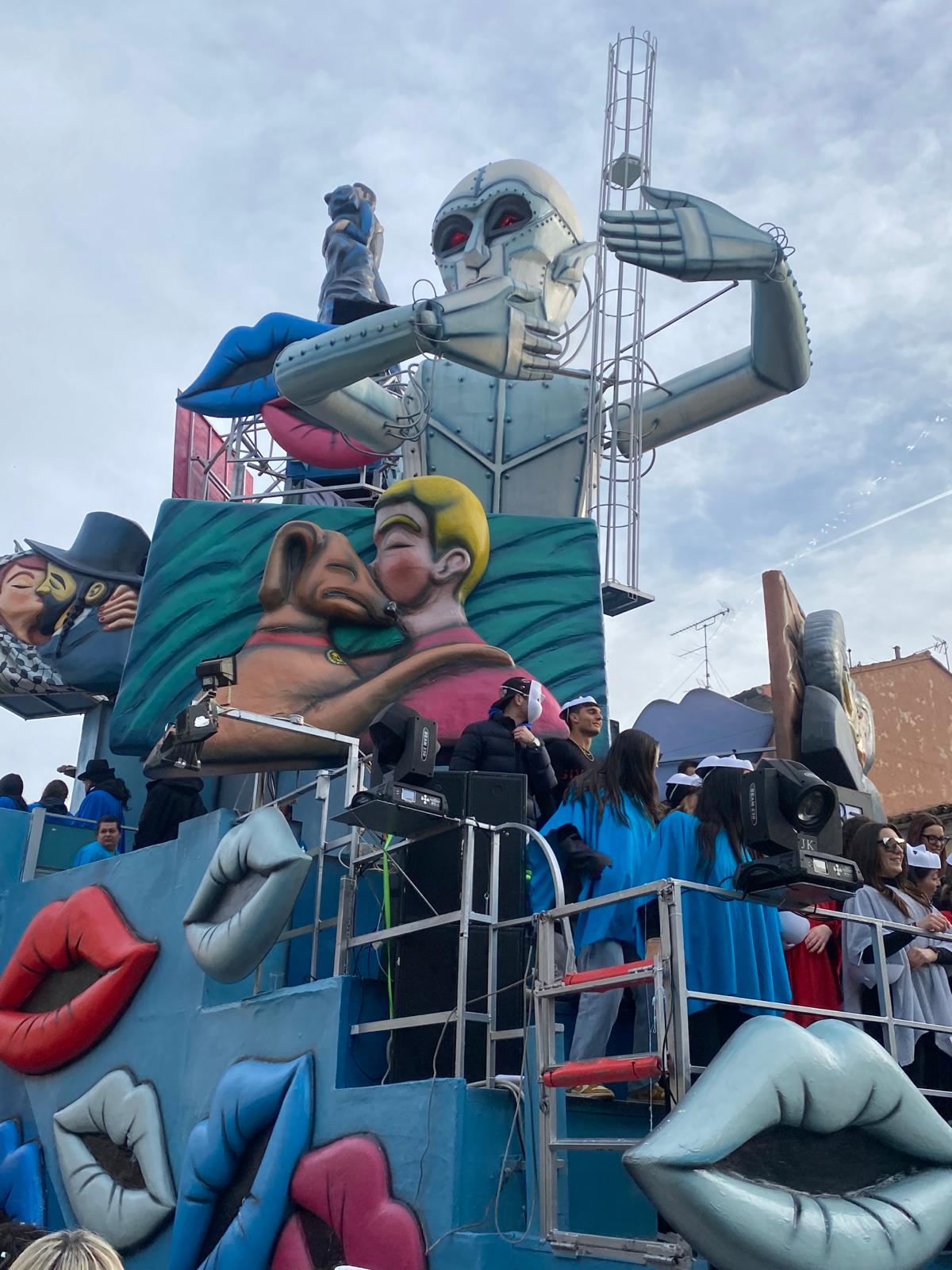 La sfilata inizia alle 15 ed è stata caratterizzata da tre giri completi del viale: il primo è stato un giro di presentazione dei carri stessi, mentre nel secondo (forse il più atteso) è dedicato al cosiddetto “getto” ovvero il lancio dei dolciumi. Il terzo giro, invece, è sicuramente quello più suggestivo, in quanto viene fatto al calar del sole, dove si possono ammirare i carri illuminati da luci colorate ed arricchiti da fumo ed effetti speciali.